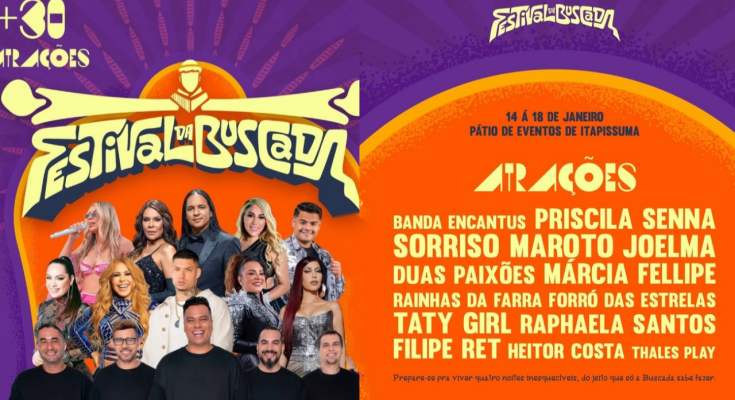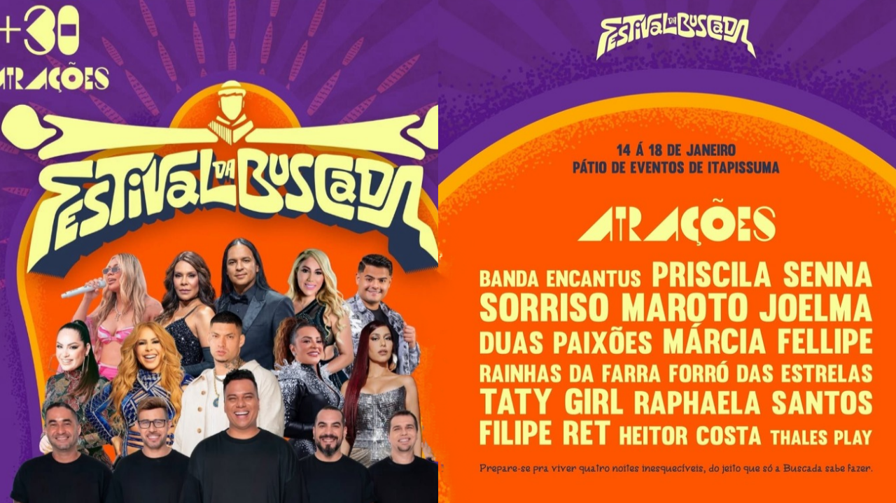 O município de Itapissuma, no Litoral Norte de Pernambuco, inicia 2026 com uma das maiores programações culturais do estado. A partir desta quarta-feira (14), começa o Festival da Buscada, que reúne mais de 30 atrações nacionais e regionais em uma programação musical gratuita no Pátio de Eventos da cidade.